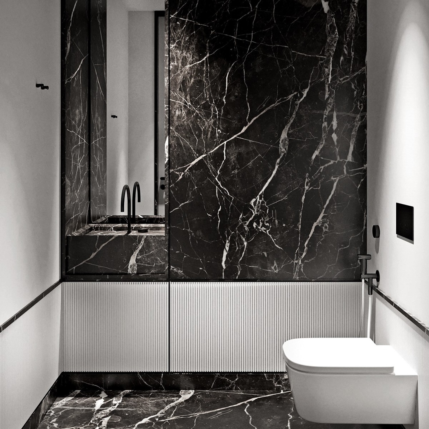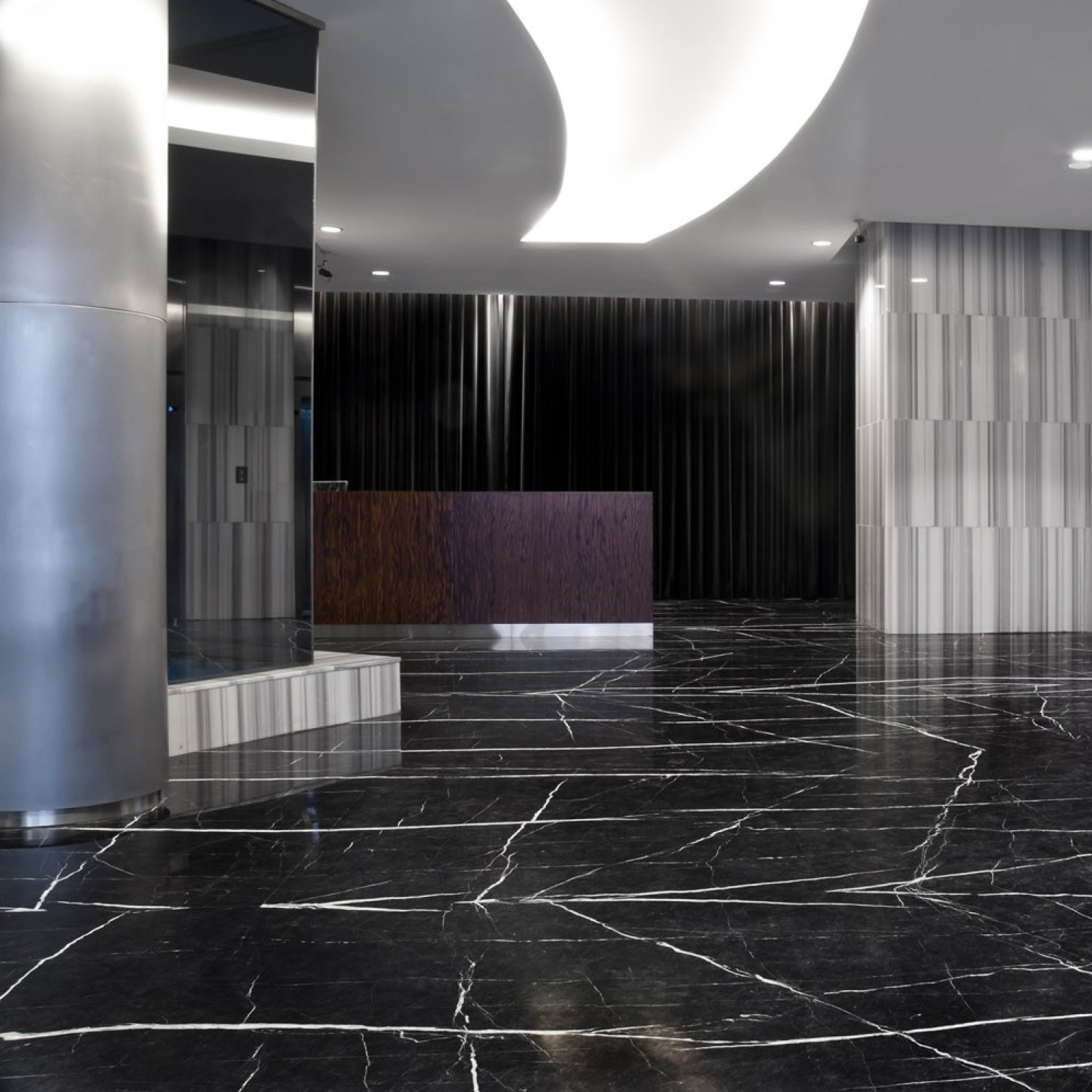 Suave, aterciopelado, el mármol Negro Marquina es combinable con todo tipo de ambientes, desde los más sofisticados a los más elegantes y sencillos.
