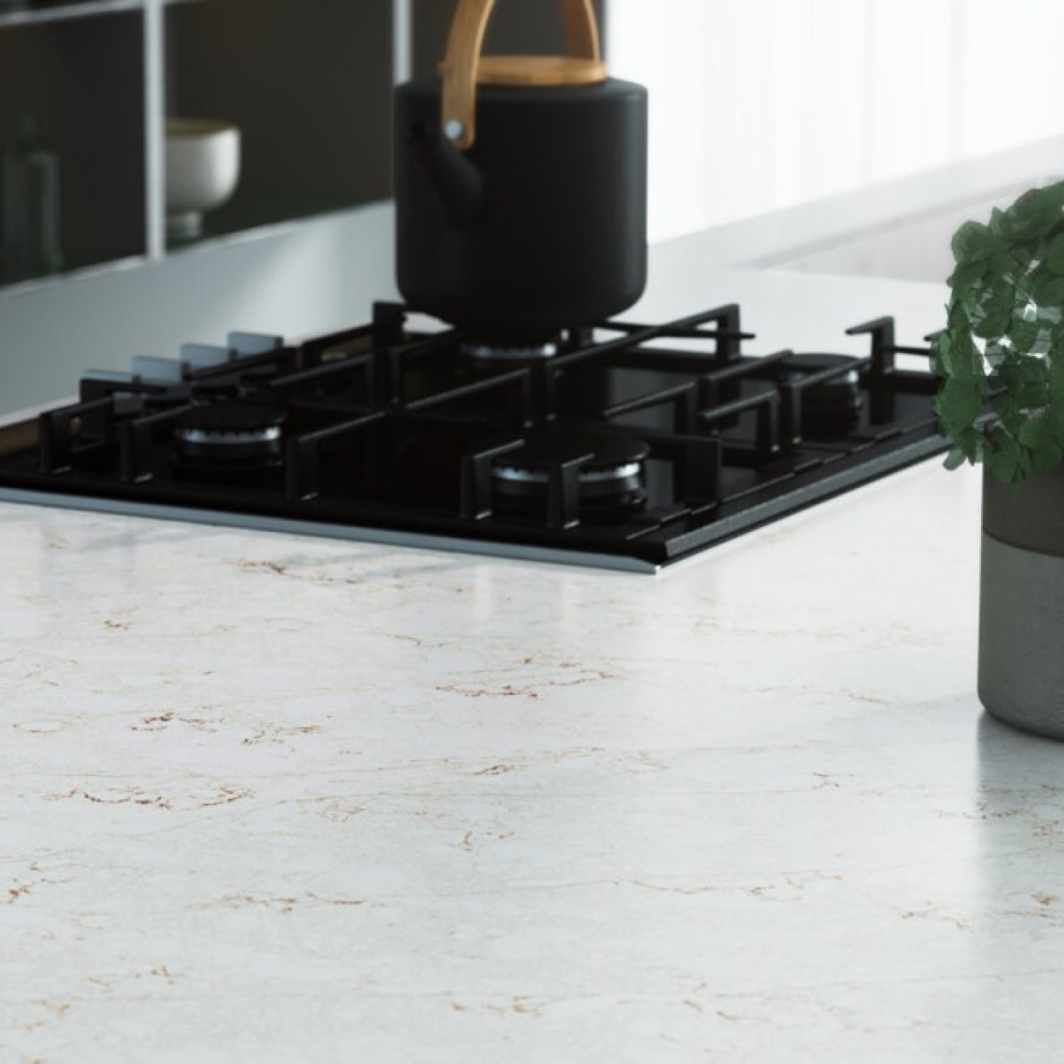 Bianco Luxe se consigue en 2 cm de espesor. Ideal para mesadas estándar, espesor tradicional de gran resistencia y robustez.