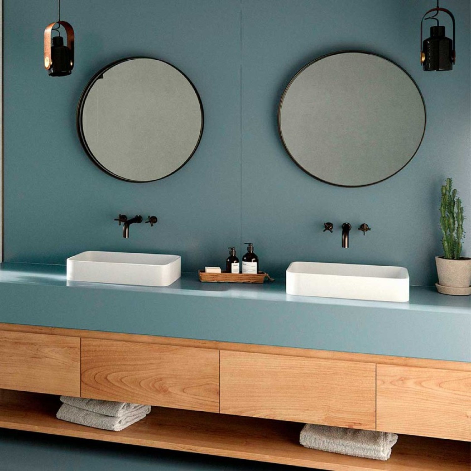 Su versatilidad permite combinaciones con maderas oscuras como el nogal y ceniza, así como con metales oscuros para dar un aspecto más clásico. Combinado con colores nudes y maderas es perfecto para espacios rústicos