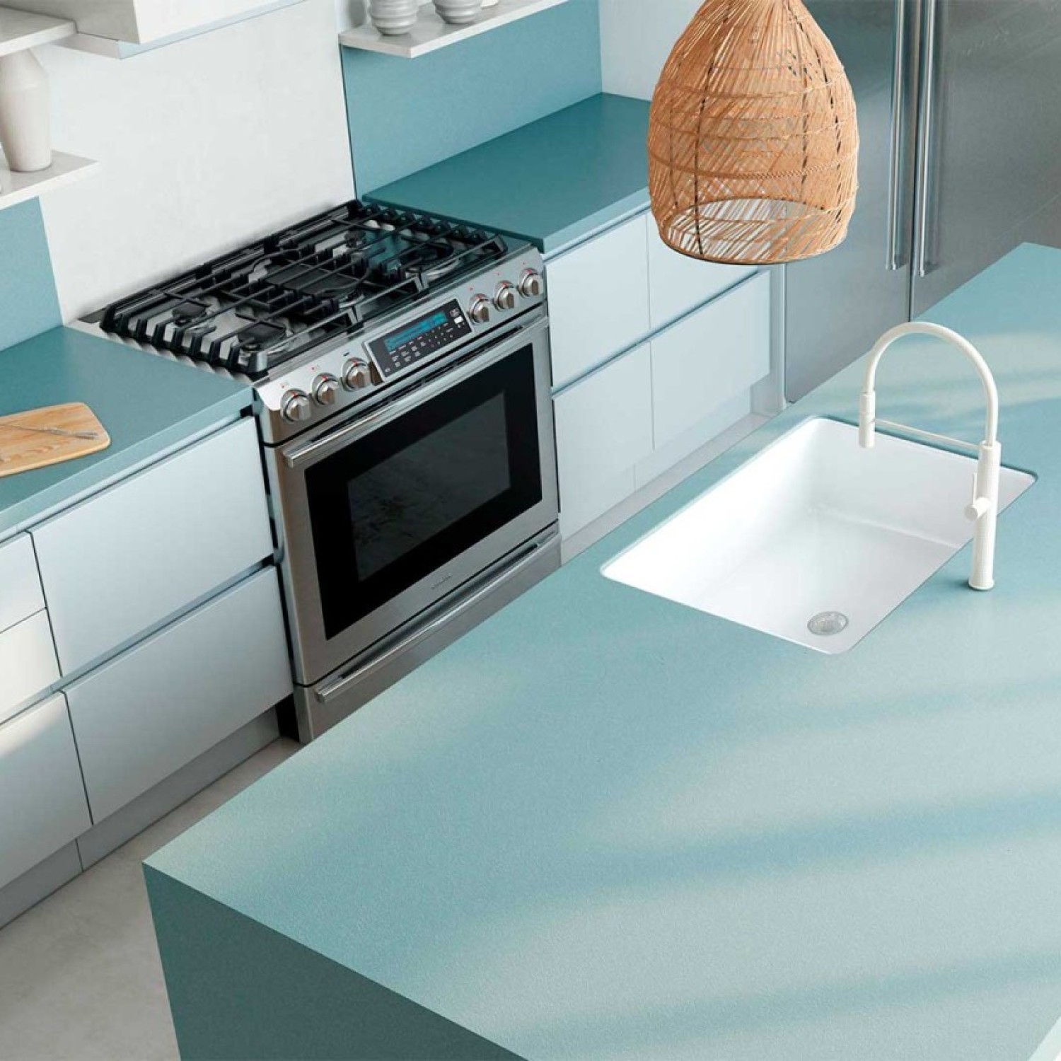 Es un azul profundo, moderno y estimulante que en su interacción con la luz se balancea entre la profundidad y la superficie del mar.
