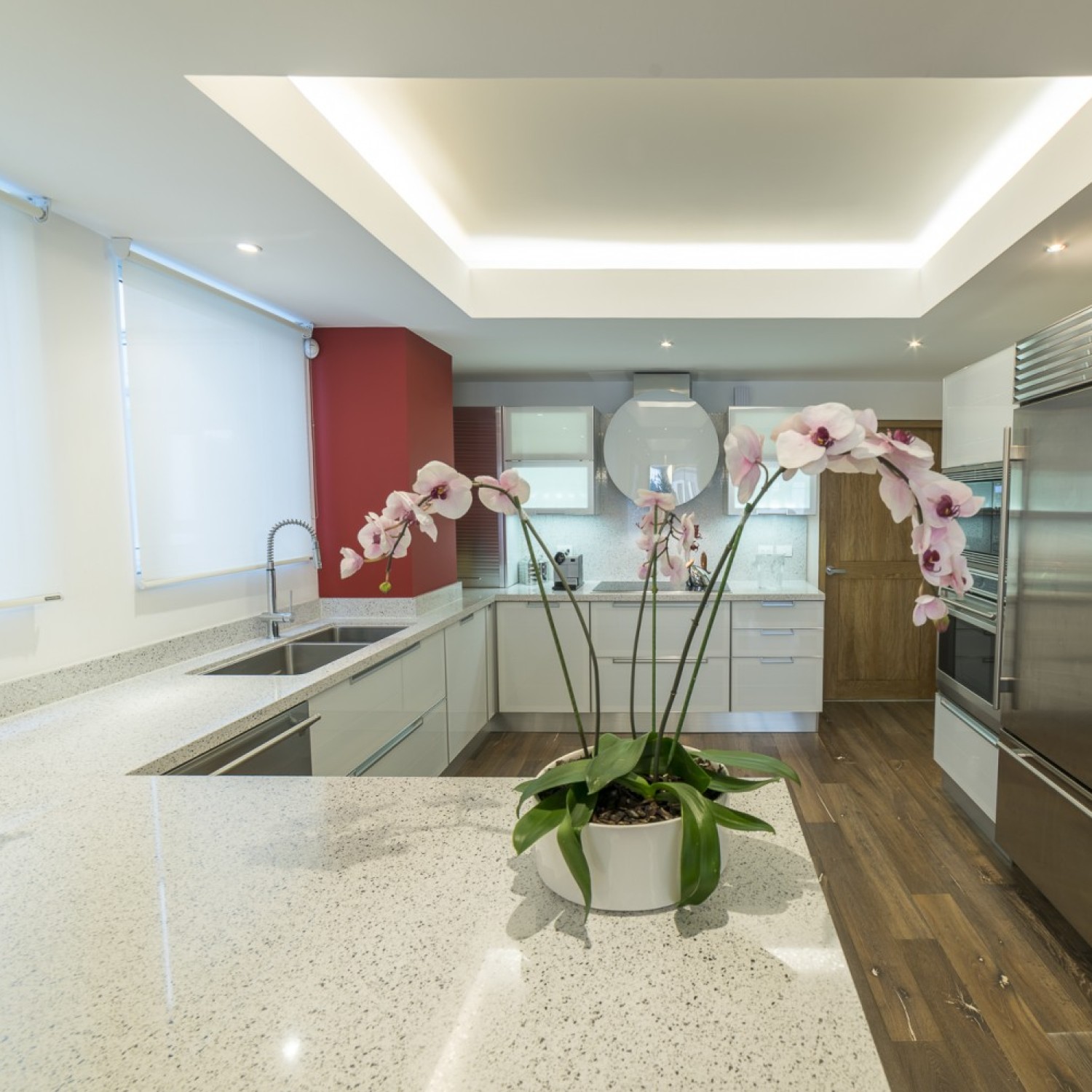 Este blanco siempre sorprende, con sus toque brillantes será el protagonista de tus ambientes aportando elegancia y luminosidad.