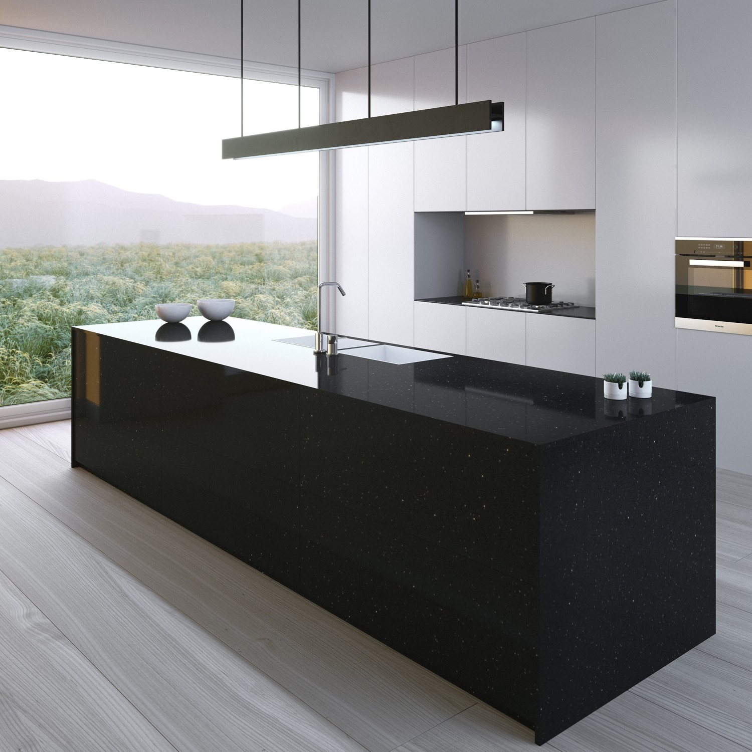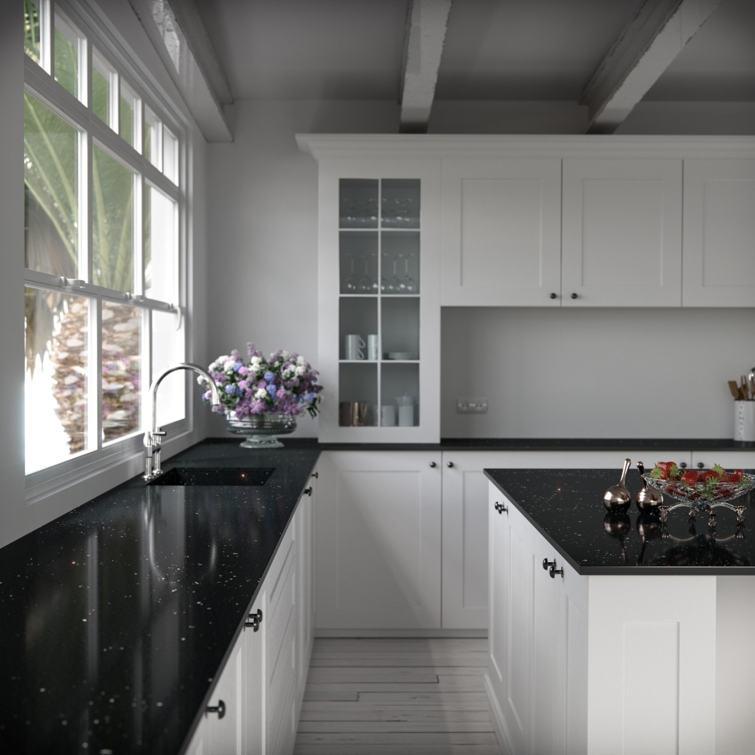 Llamativo juego de luces gracias a los cristales encajados sobre fondo negro intenso.