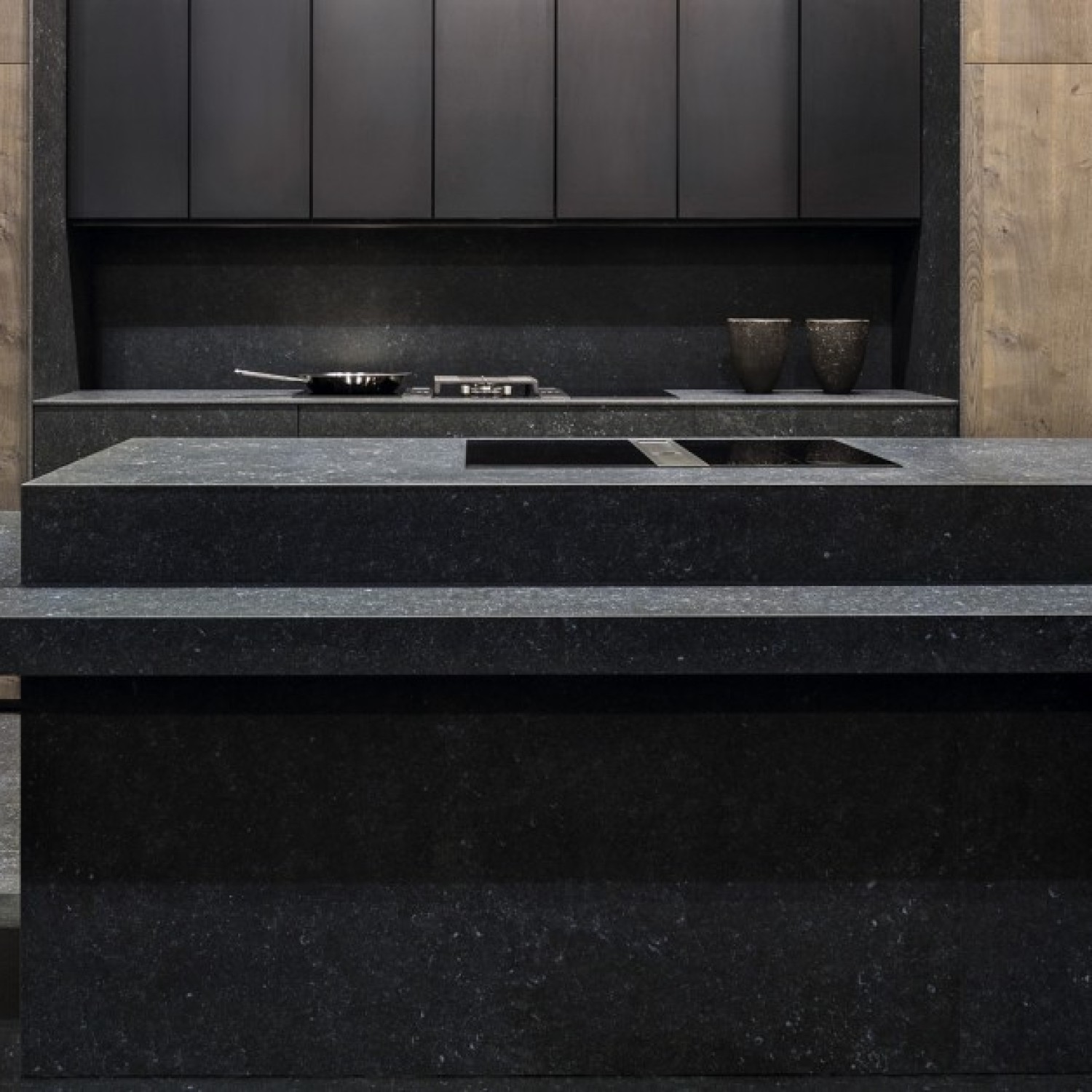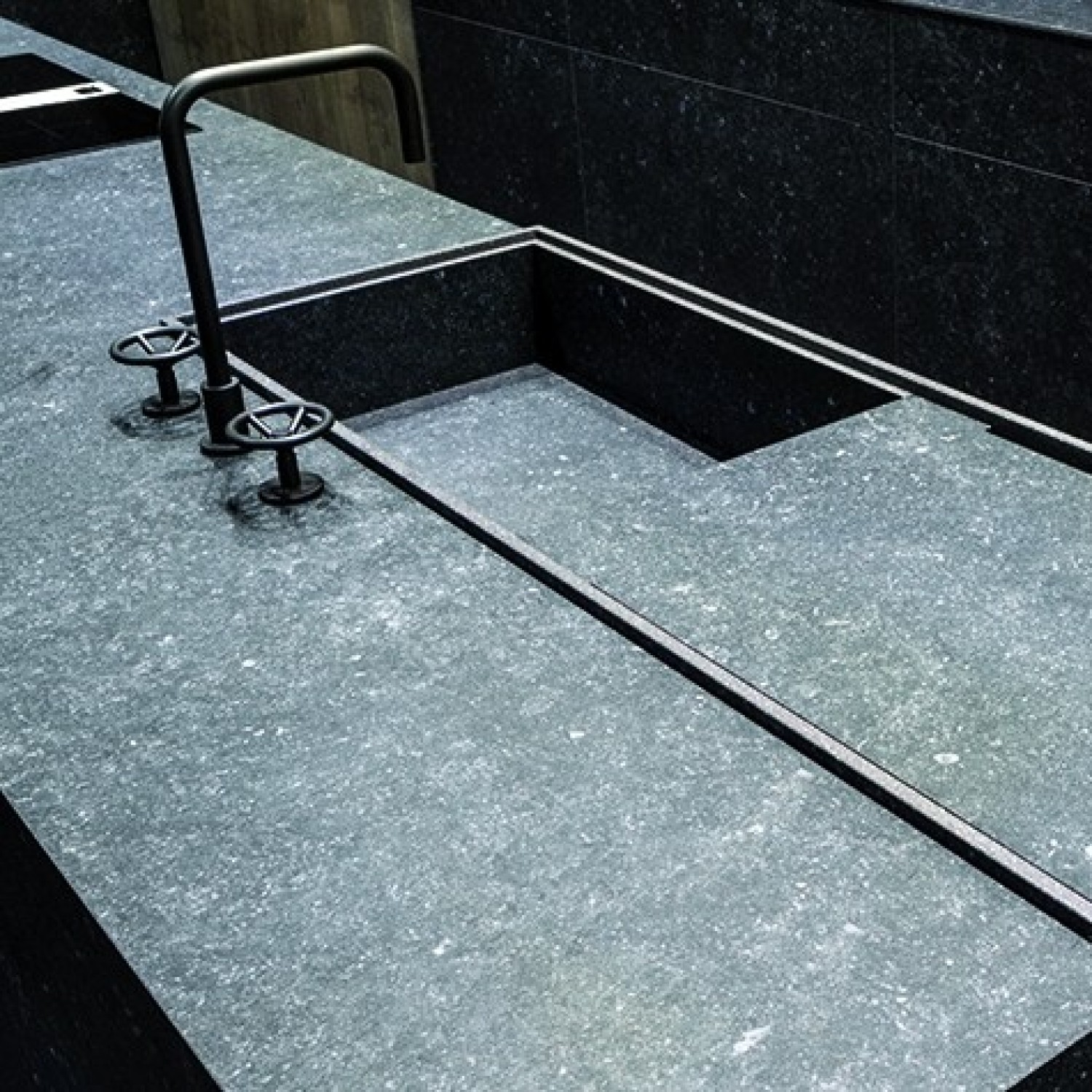 Pierre Bleue es una reinterpretación del clásico de Neolith, Belgian Blue. Inspirado en la piedra natural conocida como Le Petit Granit, este modelo es el resultado de las técnicas más avanzadas empleadas con las tecnologías NDD y Full Body de Neolith. Integrando numerosos elementos rocosos a través de toda su masa azul-gris oscura, Pierre Bleue resalta por su alta definición y grado de realismo; disponible en 6 y 12 mm.