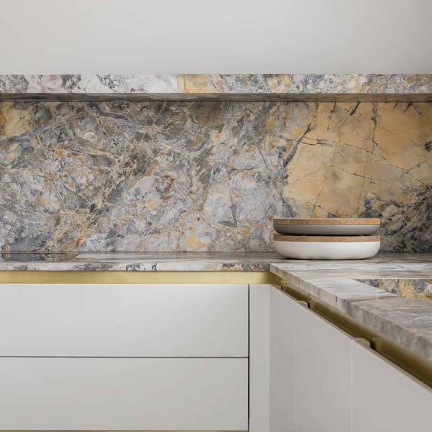 Inspirado en los tonos azules y celestes del clásico textil, su intenso veteado se compone de variaciones amarillas, ocre y marrones.